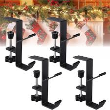 4 Pack Stocking Holders for Mantle for Christmas Decorations — 2-in-1 No-Drill Adjustable Metal Garland & Christmas Stocking Hangers (Black)